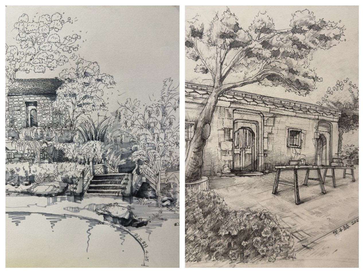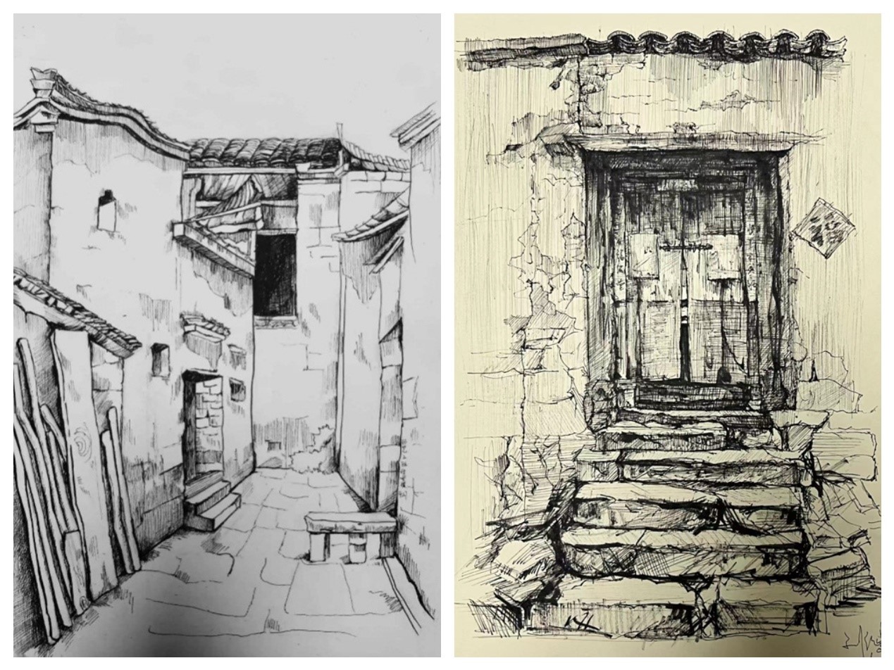 本次写生实训,艺术设计学院与城市建设学院的同学们创作出了一大批优秀写生作品,其中没有美术基础的同学进步明显,如环艺2204班刘卫翔同学,他表示,通过前导手绘表现技法课程学习了徒手钢笔线条表现和透视,这次写生将所学知识运用到实践中,觉得自己很有成就感。