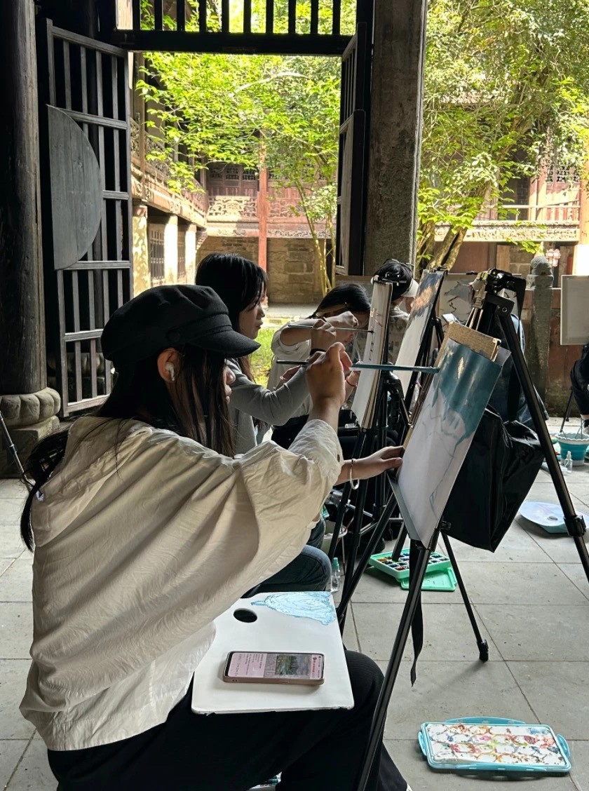 三、学生热情高涨。写生基地所在的红安县是著名的将军故里,这里的红色基因、绿色风景、古色建筑交相辉映,书院文化、革命文化、戏曲、皮影、木雕、石雕、手工大布等优秀传统文化璀璨争辉,是艺术写生创作的理想之地。