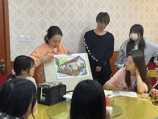 二、教师指导细致。写生实训教学中,指导老师严格执行实训计划,白天冒着烈日深入学生中点对点逐一指导,从写生视角、构图、透视、色彩等方面细心讲解,督促并指导学生完成当天的写生任务。晚上,指导老师分组对学生作品进行点评,并登记当天成绩。通过指导教师的耐心辅导,让学生对构图、结构线的绘制、画面对比、结构元素的把握有了更加全面的认识。