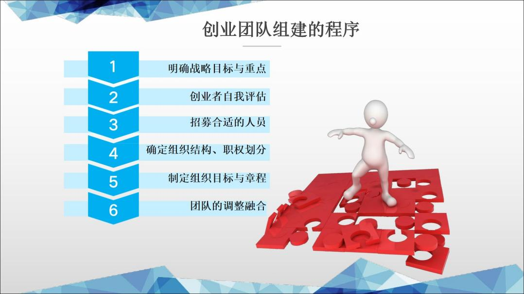 要求学生分小组讨论,然后派代表上台展示。老师点评归纳组建团队的方法、原则、程序等知识要点。