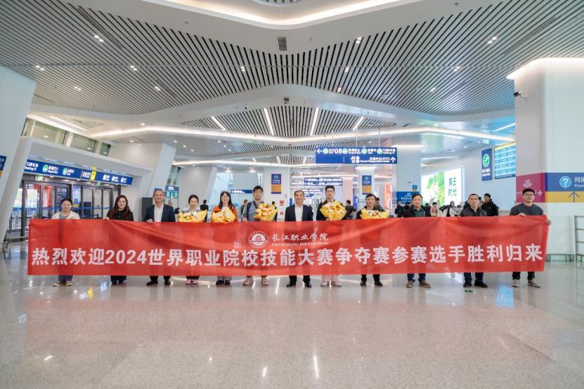 校长吴昌友带队到机场迎接2024年世赛总决赛争夺赛金奖选手凯旋
