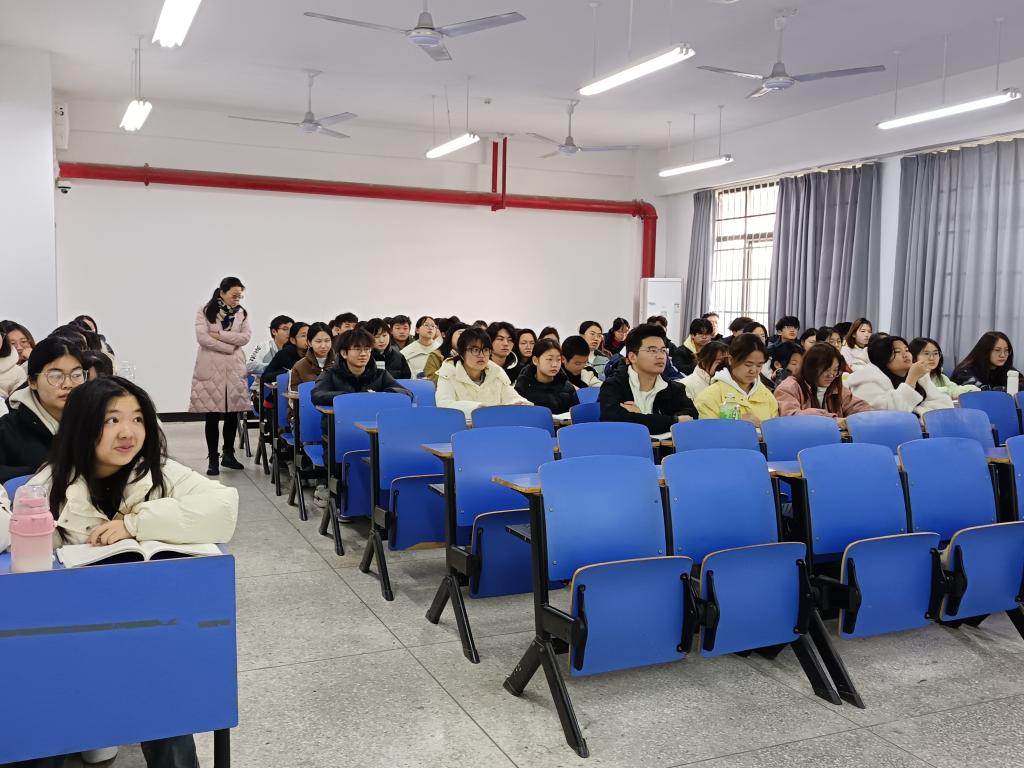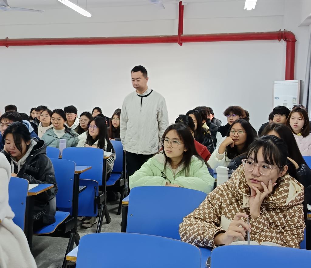 图为朱宇轩老师开展学风建设主题班会