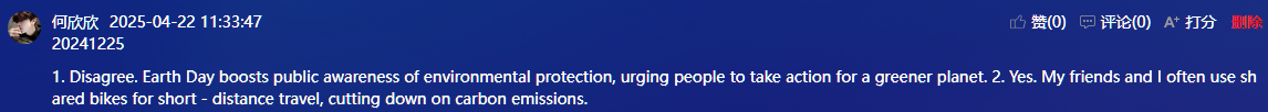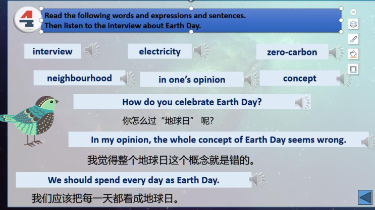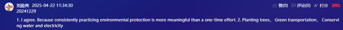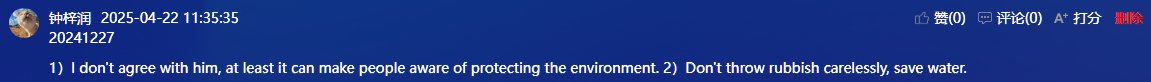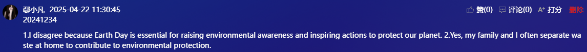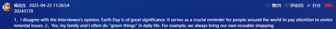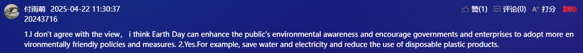 4月22日是国际地球日,国际学院赵华老师在大数据2402班的课堂,上了一节“互动生成”的英语课。师生们围绕“环境保护”这一话题,从日常生活中衣食住行出发,让学生对环保的常识性概念和其重要性有进一步了解,从而树立学生的环保意识,培养其环保素养。教学中以学生为主体,给予充分的时间和空间,让学生开展小组讨论、辩论、争论,围绕“环境保护”话题进行较流畅的交流。在听说(Listening and Speaking)模块,理解环保的意义和重要性,谈论环保话题。在阅读(Reading and Vocabulary)模块,了解“绿色生活”方式,描述保护环境的举措。在写作(Practical Writing)模块,设计“绿色环保周”。课堂教学通过职业场景嵌入,多模态资源整合与价值观引领,让语言学习成为推动绿色职业行动的桥梁,培养具有国际视野与可持续发展观的高素质人才。其教学特色体现在以“五化”引领课堂,以“学生主体”占领课堂,以““动态生成”贯穿课堂。