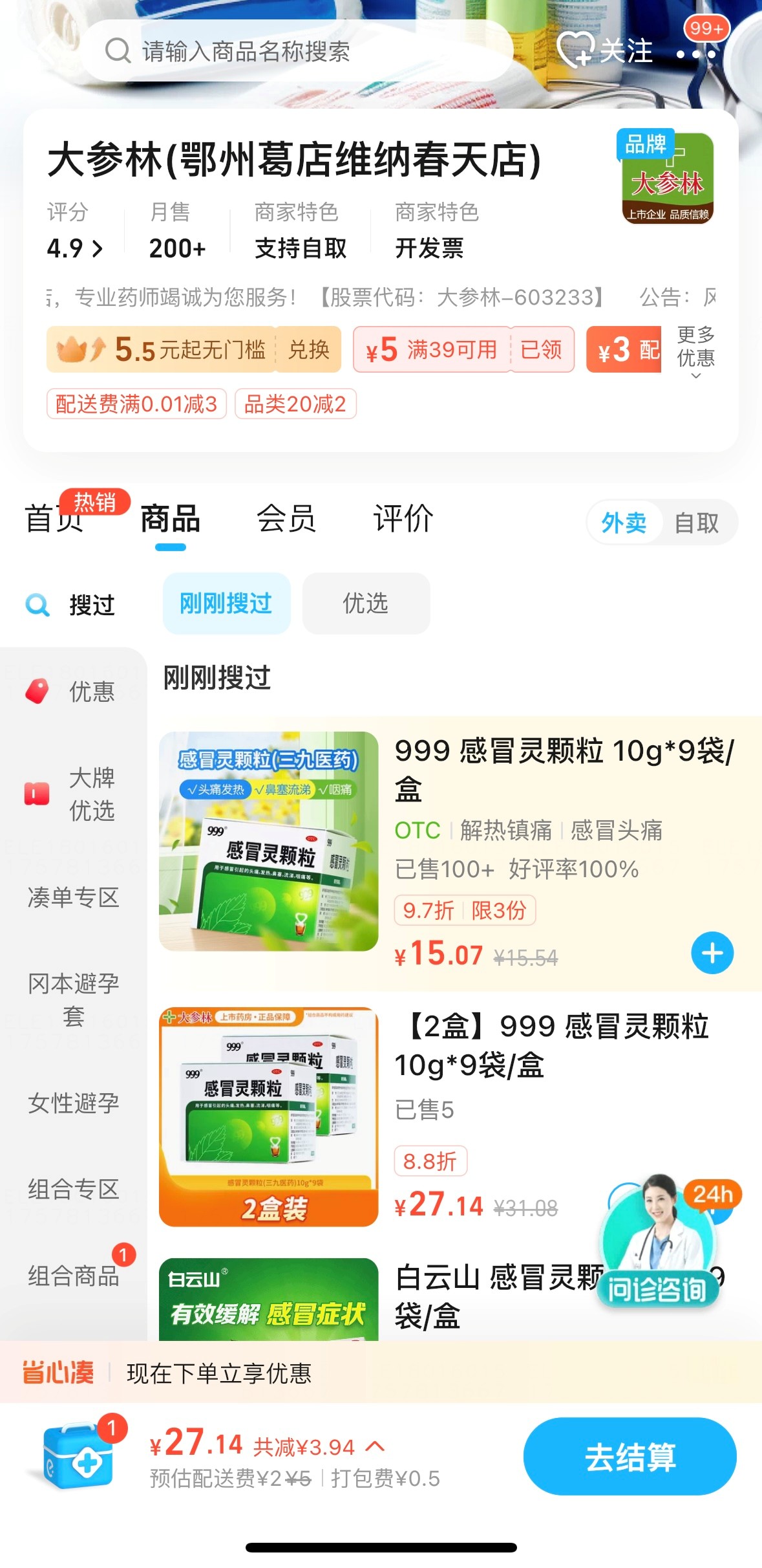 吴老师顺势邀请同学操作起来: 打开外卖APP饿了么,点击“买药”或“送药上门”入口; 在搜索框输入“三九感冒灵”,加入购物车。;核对地址,在线支付。