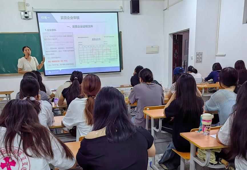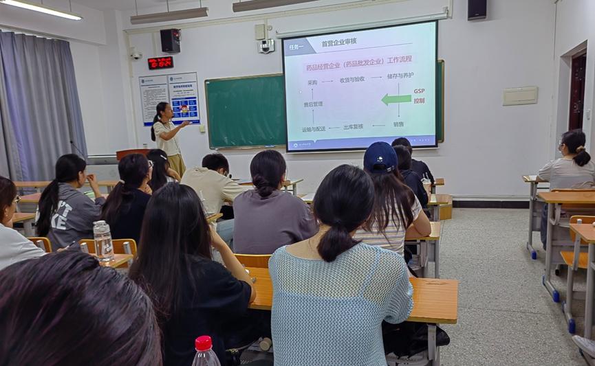 《药品购销综合实训》是药品生产技术专业群贯穿“岗课赛证”的专业拓展课程。本次教学,医药护理学院的李雯老师以“首营企业审核”为实战任务,依托真实医药流通质控环节,构建了“任务引领、角色代入、流程仿真、思政内嵌”的四维课堂,打造了一节“明规范、强责任、通流程、铸诚信”的专业实训课。