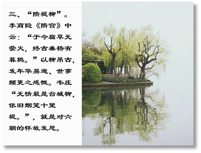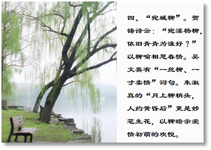 围绕“杨柳依依”的经典意象,朱立老师系统列举后世诗歌中关于“柳”的诗句,明确自《诗经》始,柳成为中国古典文学歌咏的对象,开了借柳怀人的先河,在后世的诗词之中,柳成为牵绊游子、离愁别绪的象征性植物。