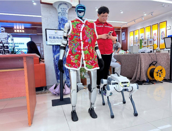 人工智能学院研发的智能机器人,不仅能执行握手、作揖等礼仪动作,更能随着音乐节拍跳街舞,甚至完成空翻。当它用机械臂比出爱心手势时,围观人群报以热烈掌声。