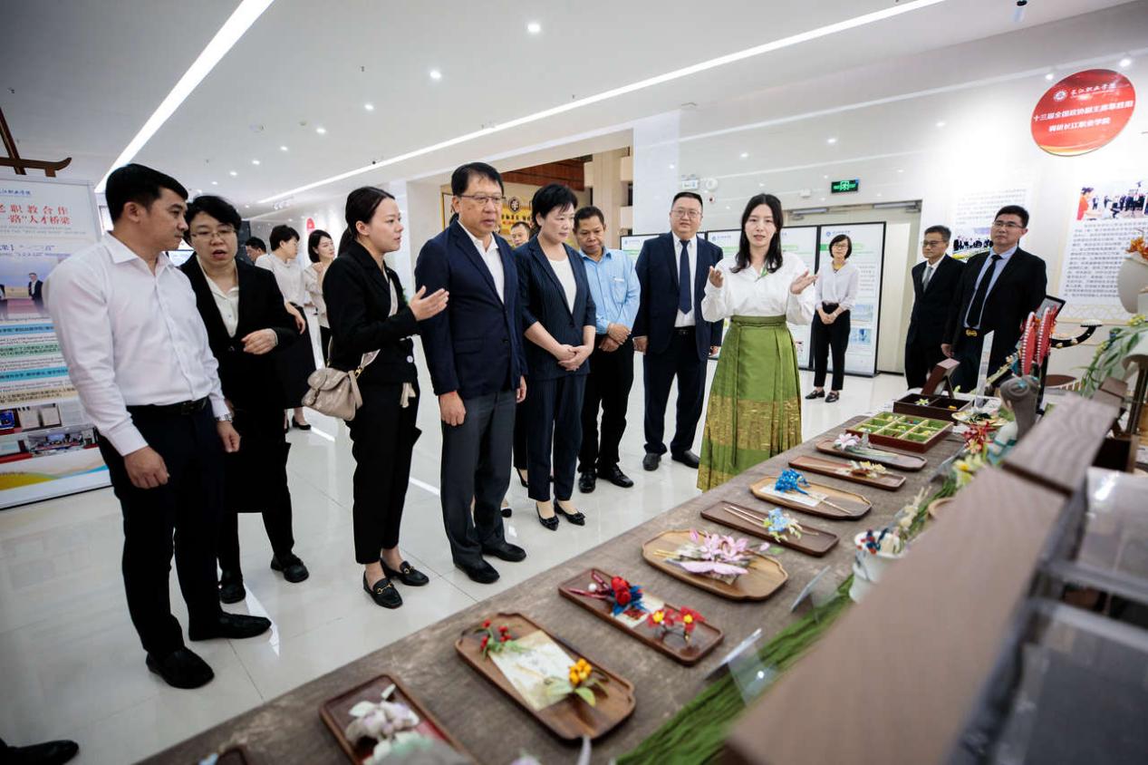 长江职业学院将非遗汉绣、叶画等中华优秀传统文化技艺与现代职业教育深度融合,展现中国职业教育"以文化人、以技立身"的独特优势。京玛诺·蓬玛哈赛一行对学校的茶艺、调酒、叶画、缠花、汉绣等文化展示项目和数字化赋能中药教育、急救教育的创新实践充分肯定,认为这种将千年文明基因植入技术技能培养的探索,彰显中华文化传承发展的时代智慧。