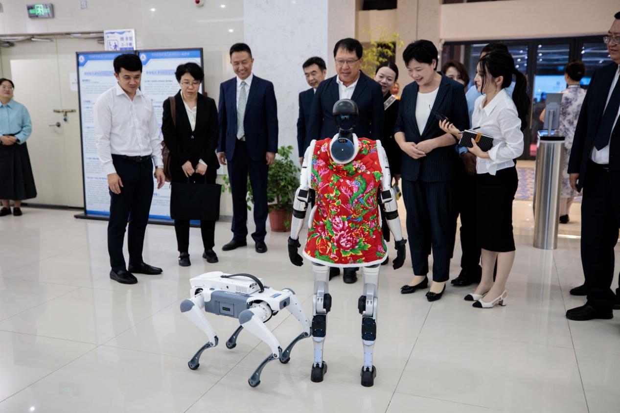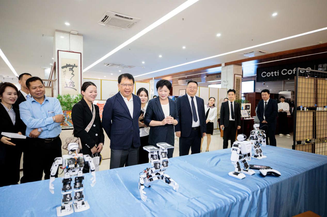 京玛诺·蓬玛哈赛一行在长江职业学院党委书记童静菊陪同下,重点考察了学校在产教融合领域的创新实践。在人工智能学院,人形机器人、四足机器狗等智能装备研发成果引起关注,京玛诺·蓬玛哈赛详细询问了AI技术在工业检测、智慧物流等场景的应用转化情况,并与机器人亲切互动。数据信息学院展区的前沿科技应用留下深刻印象,京玛诺·蓬玛哈赛一行现场体验了"心灵镜像"情绪识别系统等,并观摩无人机在智慧物流、应急救援等领域的多场景解决方案。