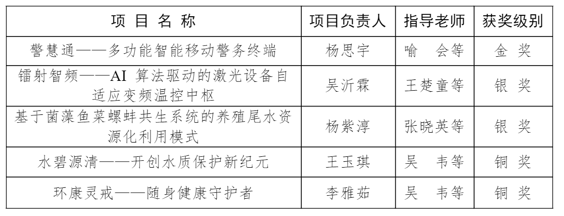 长江职业学院中国国际大学生创新大赛(2025)获奖情况一览表