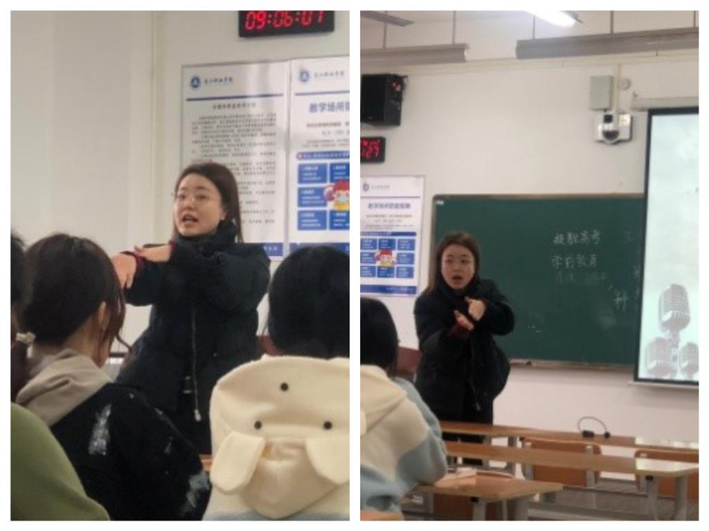 下面让我们走进文化教育学院播音主持专业赵轲老师的课堂,看看她是如何巧妙运用体态语有效提升教学效果的。