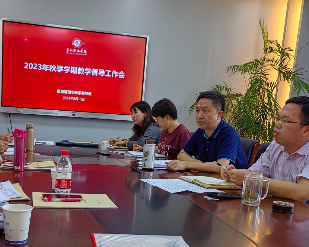 9月13日下午,长江职业学院2023年秋季学期教学督导工作会在武汉新城校区召开。分管副校长龚谦出席会议并讲话,会议由质量管理与教学督导处处长齐求兵主持。全体校级专兼职督导,教务处副处长黄竹青参加会议。