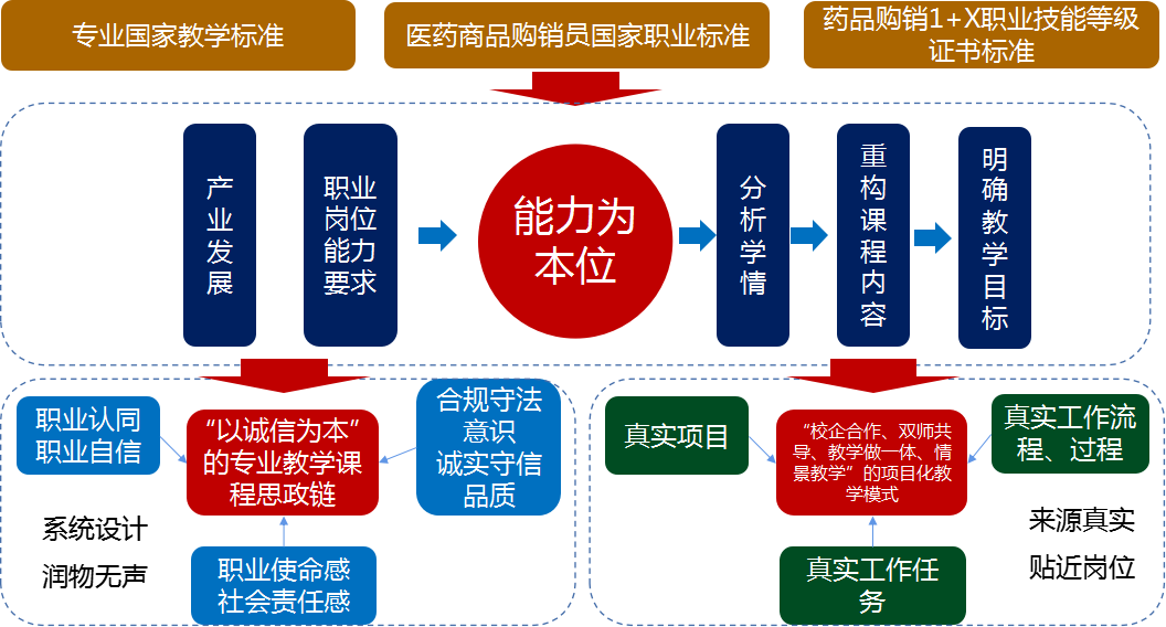 同时,基于“德术并重、德术兼优”的职业教育理念,依据医药职业道德规范,引入在药店销售过程中,夸大药品功效虚假宣传被罚款的反面案例。培养学生实事求是、诚信为本、合法经营的职业道德观念,坚守“药规”的职业信念和保证药品质量安全、诚信售药的社会责任感。