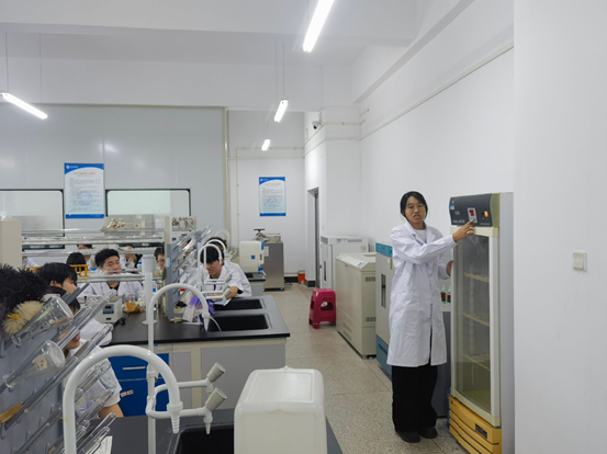 实操环节,教师将微生物限度检查拆解为“样品前处理”“梯度稀释”“培养基接种”“培养计数”四个核心步骤,进行全流程标准化示范与指导。