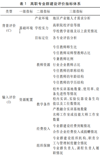 三、基于CIPP专业群建设评价指标体系的构建